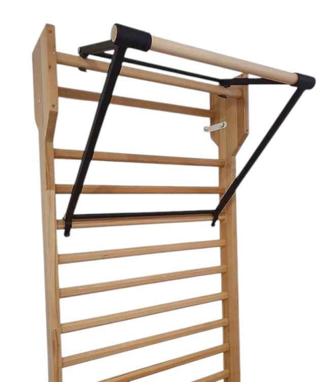 - Pull-up bar made of Ø 30 mm laminated beech wood, internally reinforced with a steel rod for extra strength.